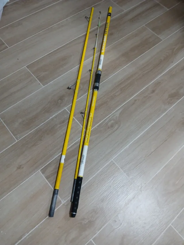 Caña de pescar Vercelli Enigma Veryon. Muy poco uso, anillaje fuji, accion 100/200gr, hybrid tip, 4.12 mtr - Color amarillo. - Mango negro.
