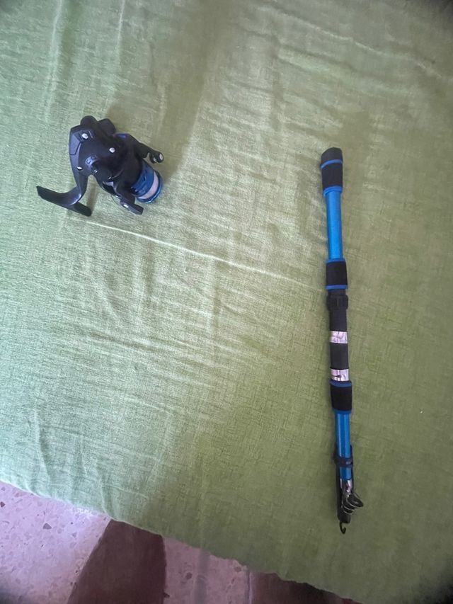 Detalles del productoVendo equipo de pesca prácticamente nuevo. Incluye una caña telescópica azul y un carrete. - Caña telescópica, ligera y fácil de transportar. - Carrete en buen estado. Ideal para principiantes.con hilo mide 1,80 metros abierta