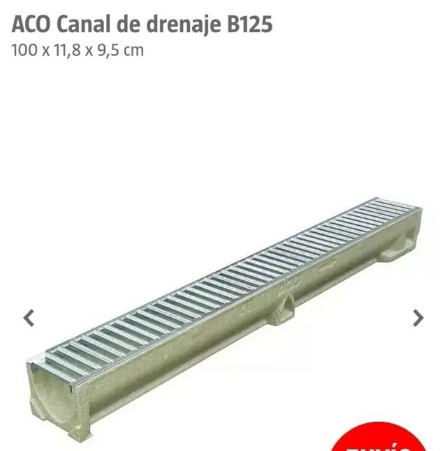 Canal de drenaje ACO B125 de hormigón polímero. - Medidas: 100 x 11,8 x 9,5 cm.