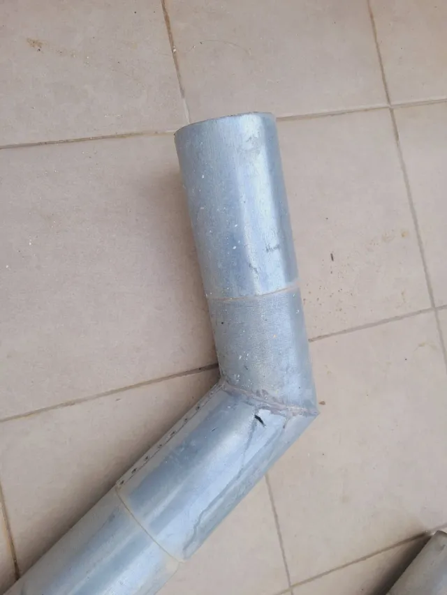 Pieza de canalón vertical de metal. - Material metálico. - Forma cilíndrica.
