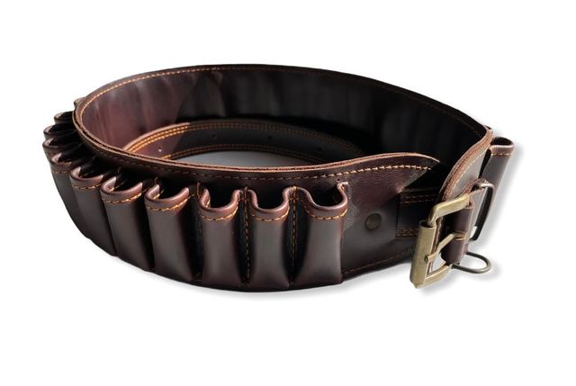 Canana en piel de bovino con rabillo regulable, capacidad para 26 cartuchos del calibre 12.