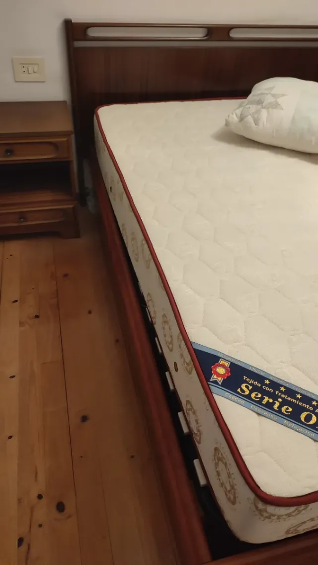 Conjunto de muebles para dormitorio. - Canapé de madera. - Dos mesitas de noche a juego. - Aparador de madera. Espejo y colchon