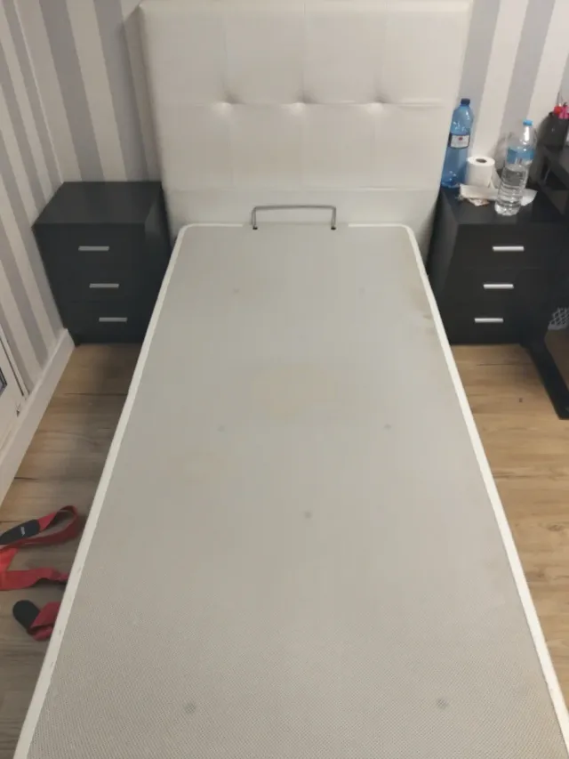 Detalles del productoSe vende canapé, cabezal y estanteria en color blanco.