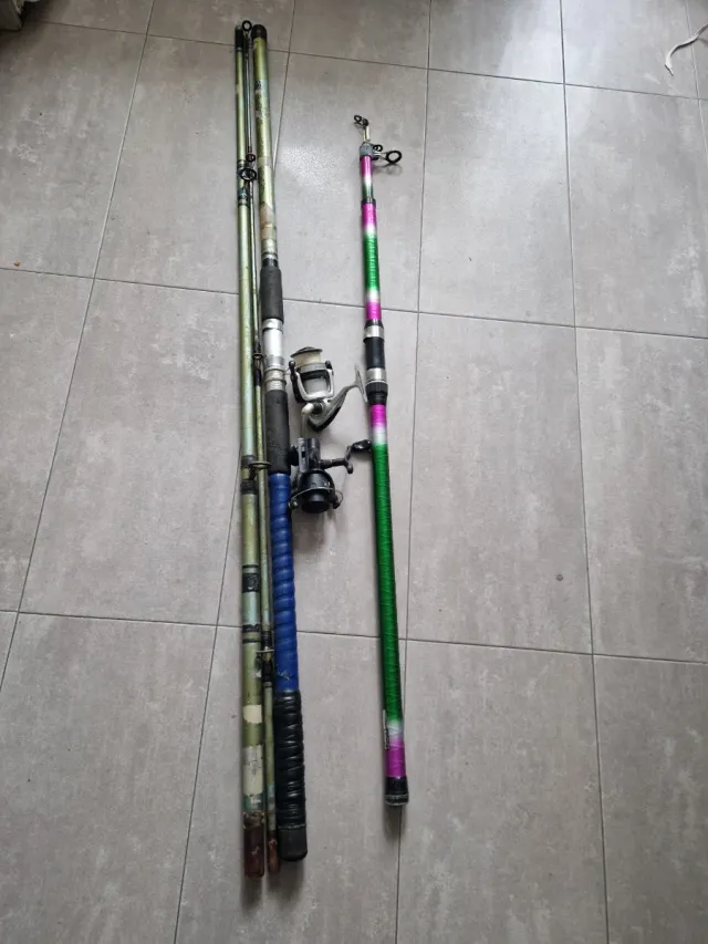 ( bastante usada) y la otra telescópica en perfectas condiciones si se quiere con luz de led para la pesca de noche y dos carrete pequeños para río