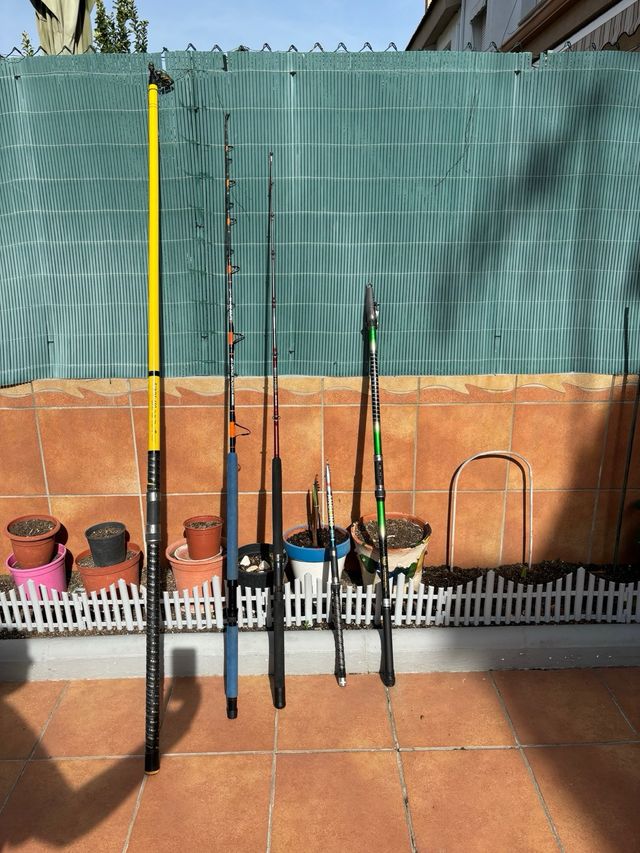 Detalles del productoconjunto de 5 cañas de pescar mas carretes.