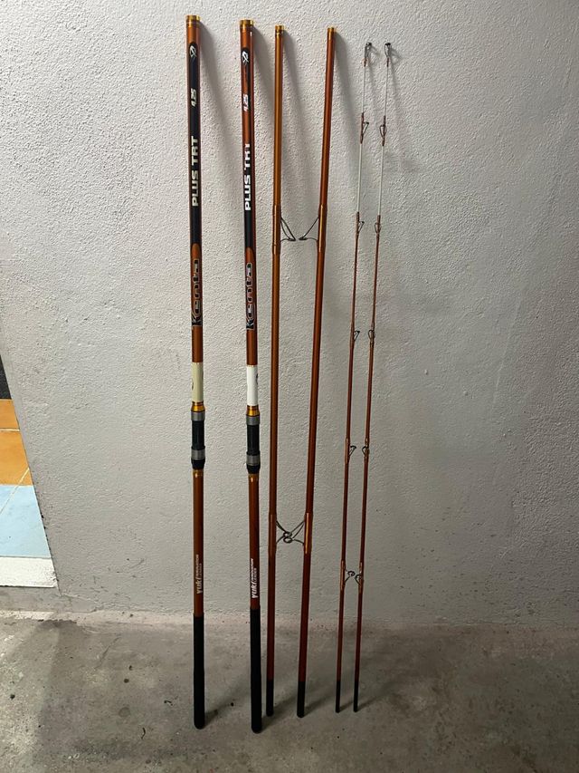 Detalles del productoPareja de cañas de pescar Yuki Kenta Trt Plus 420, las cañas tienen sus años pero no se han usado mucho, en general están en bastante buen estado algún roce y desgaste típico del uso, excepto el tramo de enmedio de una de ellas que si tiene la pintura bastante dañada por unos roces.
