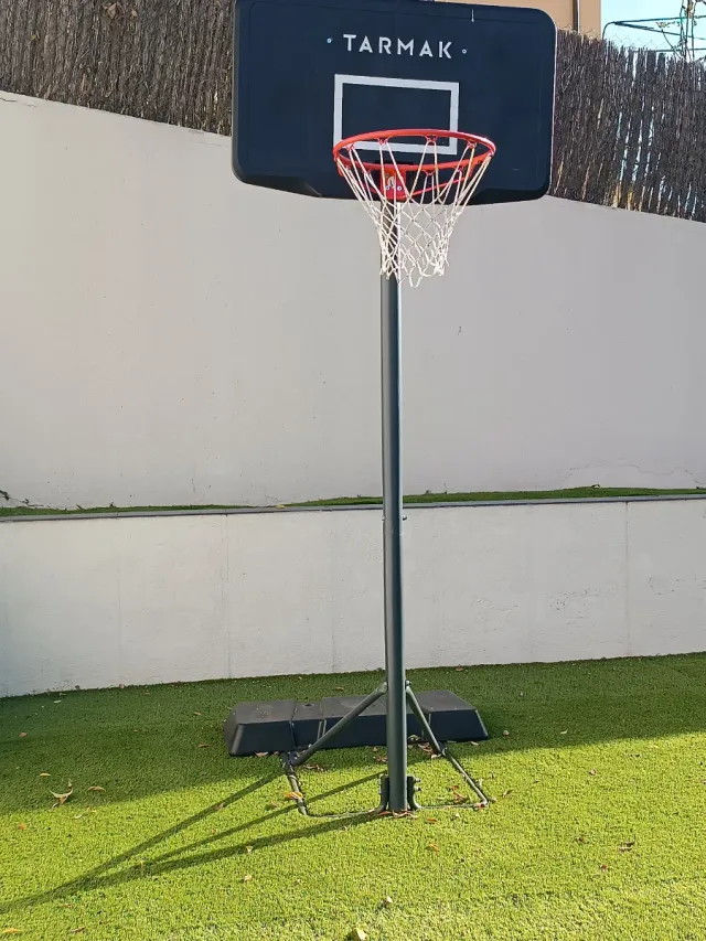 Detalles del productoCanasta de baloncesto Tarmak de Decathlon, ideal para practicar en casa. Su altura es ajustable para adaptarse a diferentes edades y niveles.