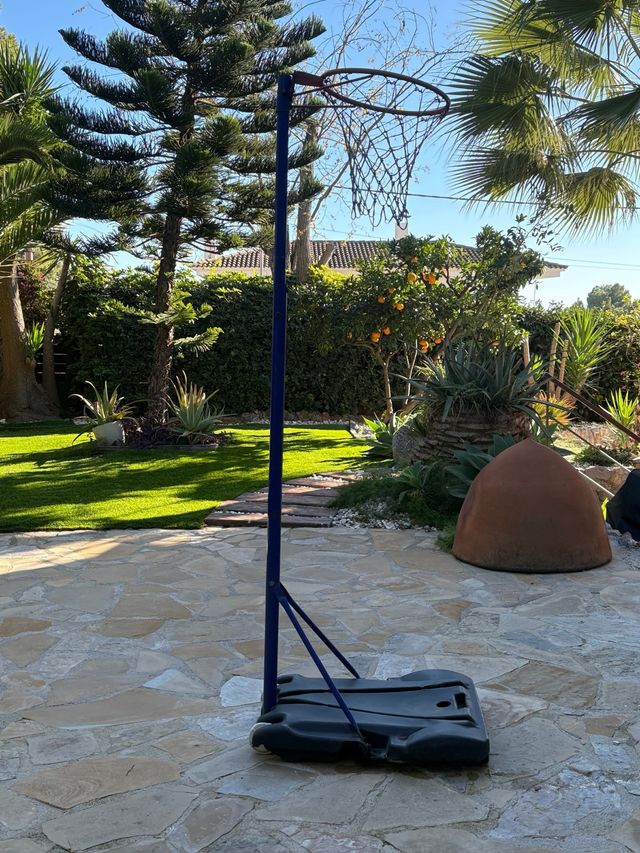 Canasta de baloncesto portátil con base rellenable. - Aro de metal. - Red de nylon. - Base de plástico resistente.