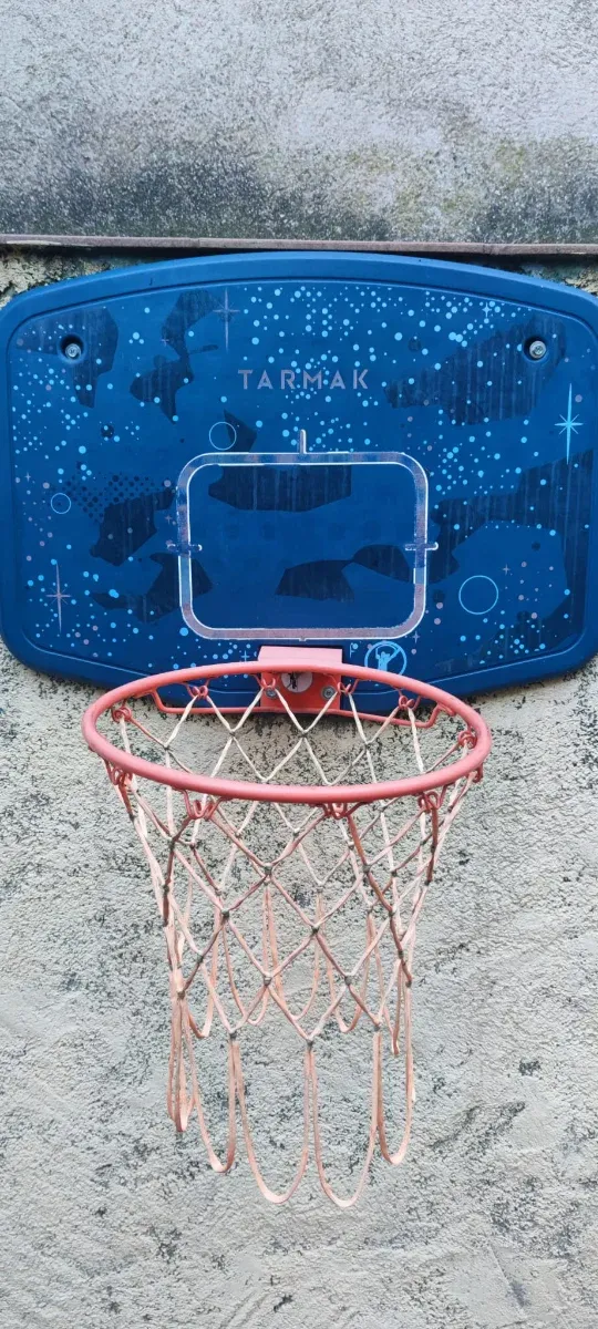 Canasta de baloncesto Tarmak con tablero azul y red. - Tablero de baloncesto azul con diseño. - Aro de baloncesto. - Red de baloncesto.