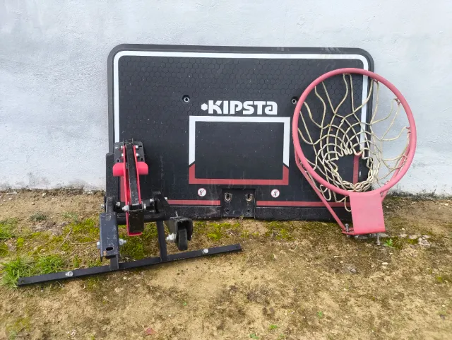 Canasta de pared de la marca KIPSTA. - Tablero negro con detalles blancos y rojos. - Aro de color rojo con red. - Soporte metálico.