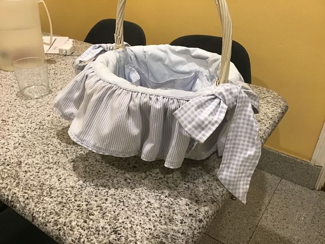 Canastilla vestida con volantes, se puede usar para regalo llena de pañales y otras cositas para el bebé