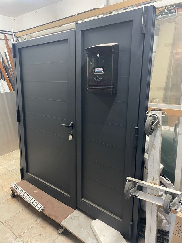 Cancelas de dos hojas en color gris antracita (RAL 7016TX). - Diseño moderno y elegante. - Acabado texturizado.