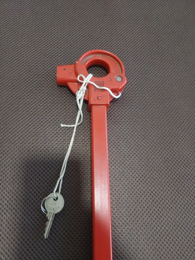 Candado de seguridad para el volante de tu coche. Fabricado en metal rojo, incluye una llave. - Color: Rojo - Material: Metal - Incluye: 1 llave
