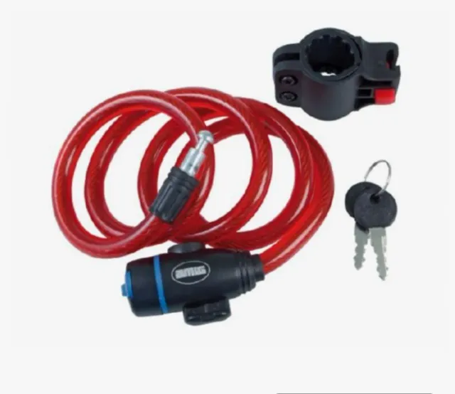 Detalles del productoCandado de seguridad en espiral para bicicleta, ideal para protegerla de robos. Incluye soporte para el cuadro.