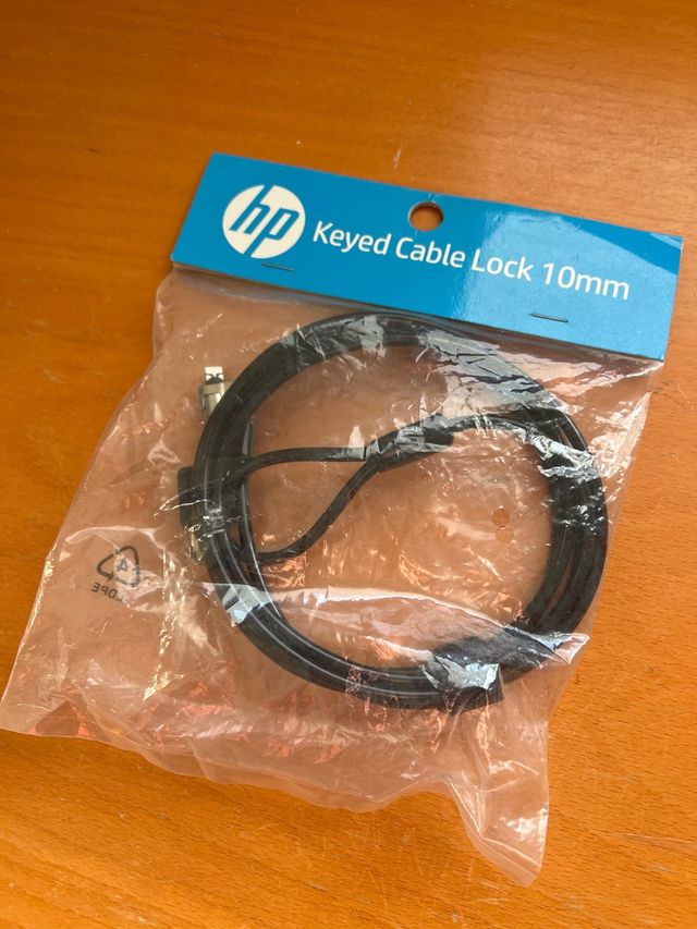Candado de cable HP para ordenador, nuevo y sin usar. - Modelo: Keyed Cable Lock 10mm. - Color: Negro. Recogida en Valencia o El Puig, envios por wallapop