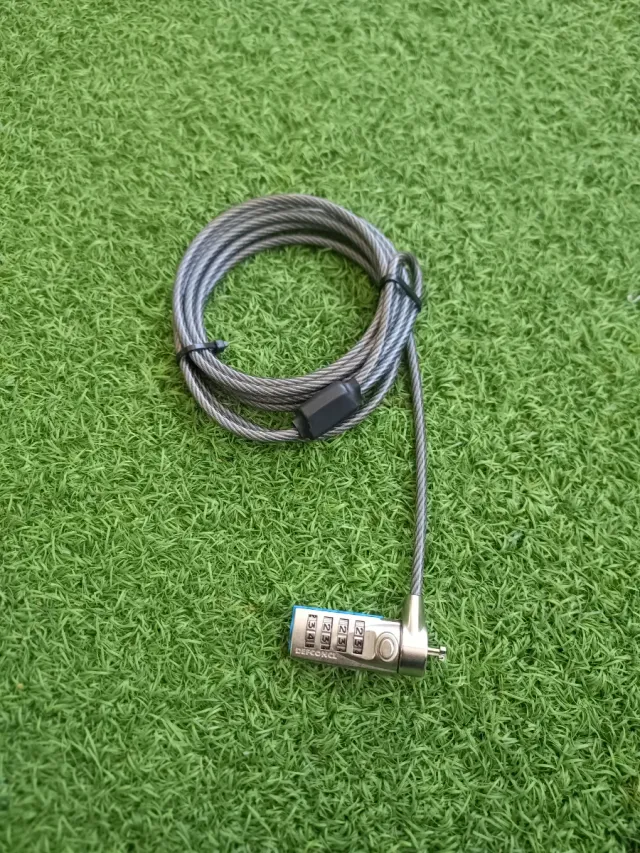 Detalles del productoCandado de seguridad con cable de acero y cerradura de combinación de 4 dígitos. Ideal para proteger dispositivos electrónicos.