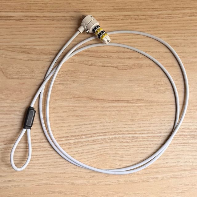 Detalles del productoCandado de seguridad con cable blanco y cerradura de combinación numérica. Ideal para proteger dispositivos electrónicos. Cable de acero recubierto de plástico blanco.