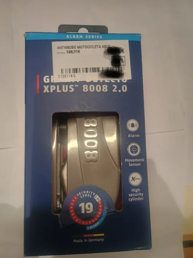 Detalles del productoCandado de disco para moto Abus Granit Detecto 8008 Xplus 2.0.