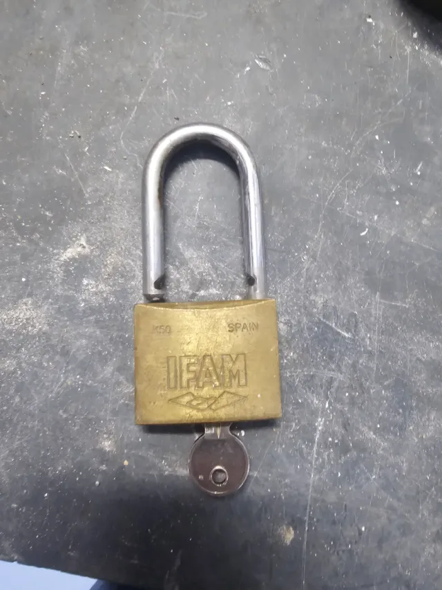 Candado IFAM de latón, modelo K50, fabricado en España. Se encuentra en buen estado. - Cuerpo de latón. - Arco metálico. - Incluye llave.