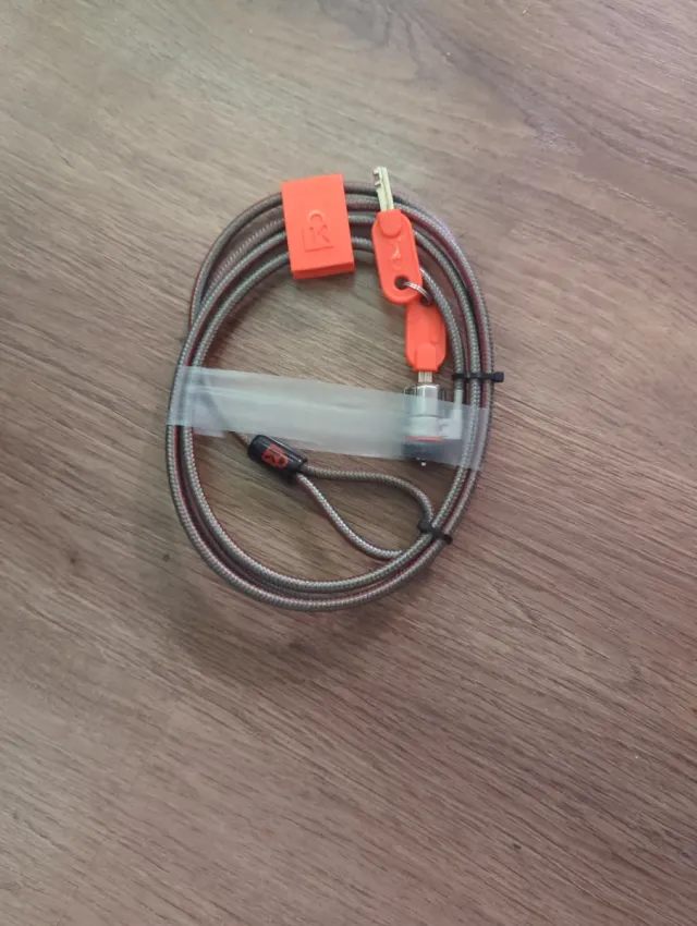 Candado de seguridad para ordenador portátil. - Incluye dos llaves. - Cable de acero trenzado. - Soporte naranja para organizar el cable.