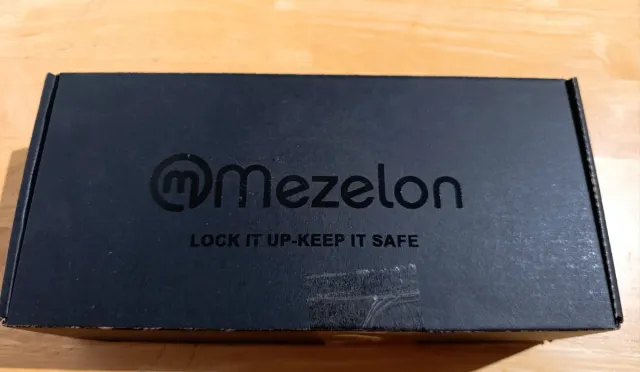 Detalles del productoCandado de la marca Mezelon con el lema LOCK IT UP-KEEP IT SAFE.