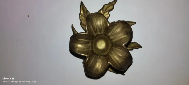 Precioso candelabro o cenicero con diseño de flor en acabado dorado. - Estilo vintage. - Detalle de hojas. - Color dorado.