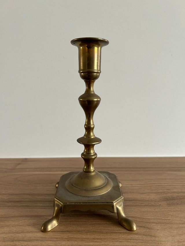 Detalles del productoElegante candelabro de bronce con un diseño clásico y detalles ornamentales. Su base cuadrada con patas le otorga estabilidad y un toque distintivo.