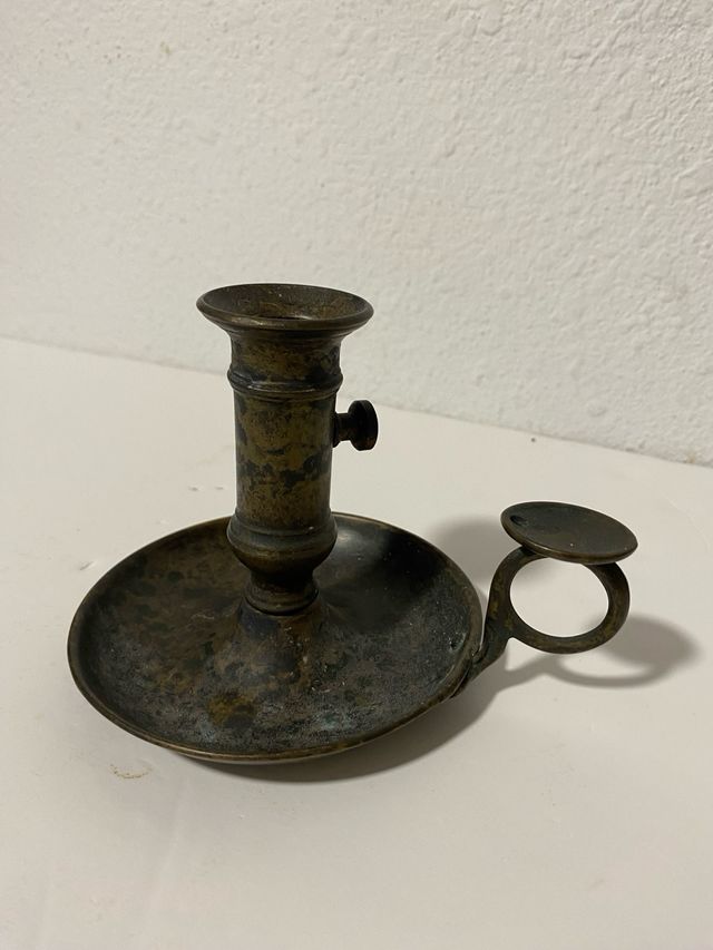 Candelabro de latón antiguo , de alto 10cm , base 10 cm