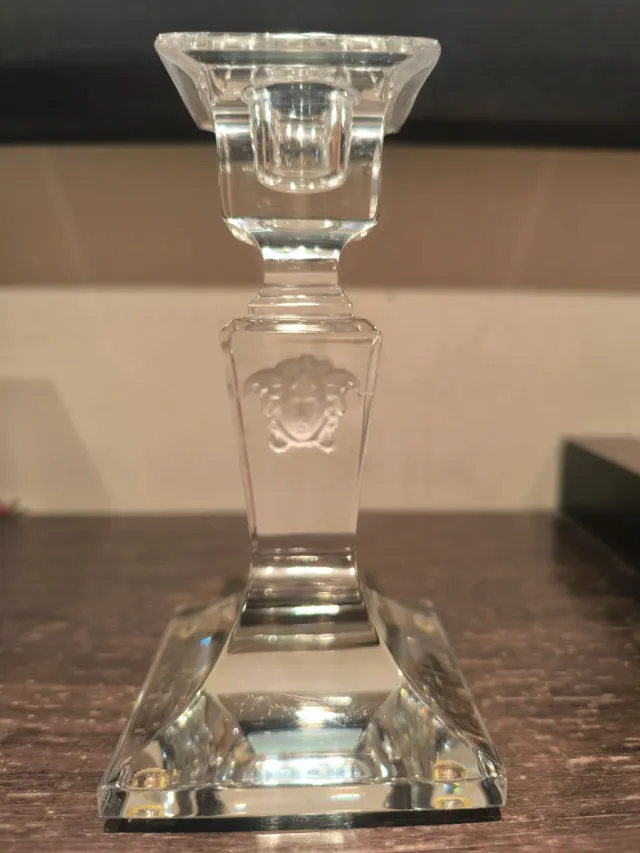 Detalles del producto2 candelabros VERSACE de cristal de 15CM uno en perfecto estado y el otro con las marcas que se ven en la foto