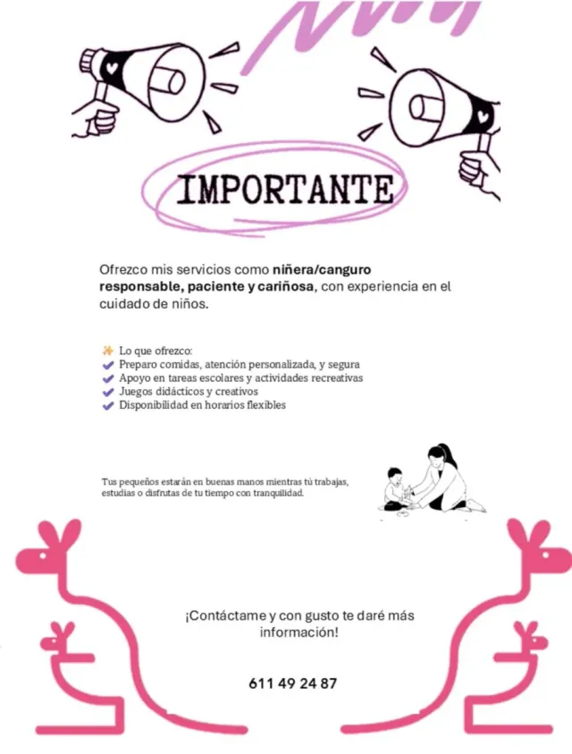 Ofrezco cuidado por horas o jornadas, ayuda con tareas, meriendas y actividades educativas.