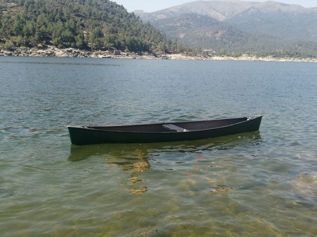 La canoa se encuentra en el pantano del Burguillo.