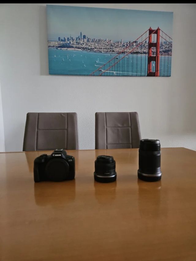 Detalles del productoVendo cámara Canon EOS R50 en buen estado, junto con dos objetivos. Incluye la cámara Canon EOS R50, cargador y dos lentes: rf-s 18-45mm y 55-210mm. La cámara y los objetivos esta en perfecto estado y la cámara tiene menos de 8000 clicks
