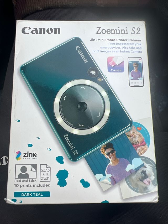 Detalles del productoCámara instantánea y mini impresora fotográfica Canon Zoemini S2 en color Dark Teal. Permite imprimir fotos desde tu smartphone o tomar y revelar instantáneamente.