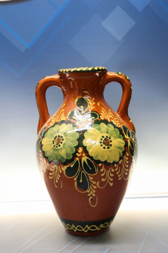 Cántaro, ánfora de cerámica pintada a mano. Firmada.
