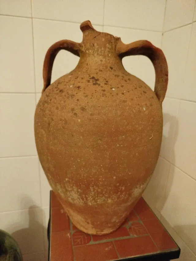 Antiguo cántaro de barro con asas. - Material: Barro. - Color: Terracota. 24 cms de ancho x 40 cms de alto