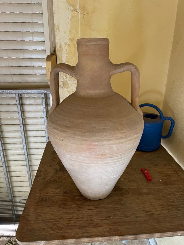 Cántaro de barro artesanal con dos asas. De 50 cm de altura y 30 de ancho como maximo. - Material: Barro. - Color: Terracota. - Diseño tradicional.
