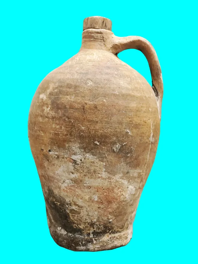 Detalles del productoAntiguo cántaro de cerámica popular de la zona de La Alcarria. Pieza con un diseño tradicional y rústico.