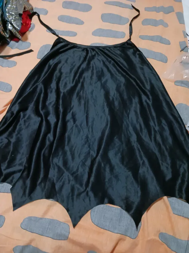 Capa negra con diseño de murciélago. - Material satinado. - Cierre con tiras. 3 euros cada una