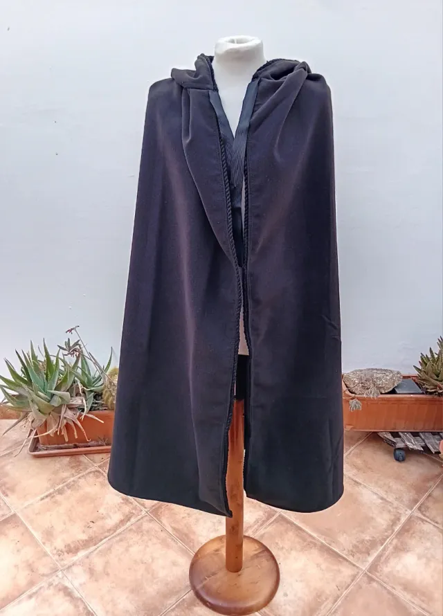 Capa Medieval Artesanal con Capucha Negra