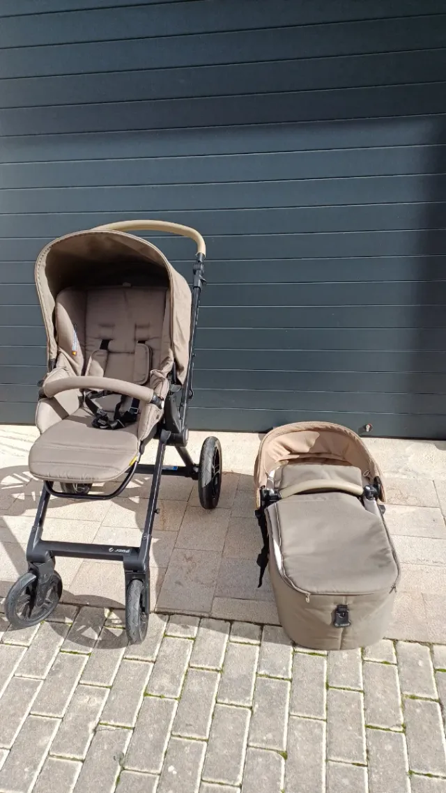 Se vende conjunto de capazo y carro Jane Muum. Incluido saco de invierno. - Color beige. - Chasis negro.