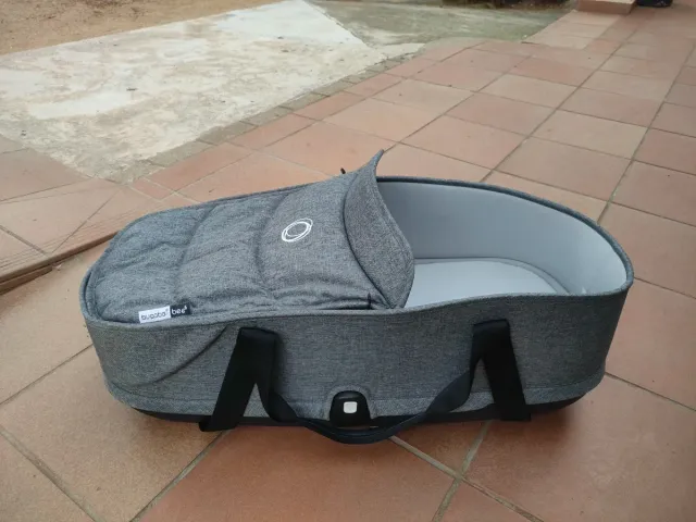 Capazo Bugaboo Bee 6 color gris. En perfecto estado, usado en contadas ocasiones (no le gustaba nada a nuestro bebé). Incluye adaptadores para carrito