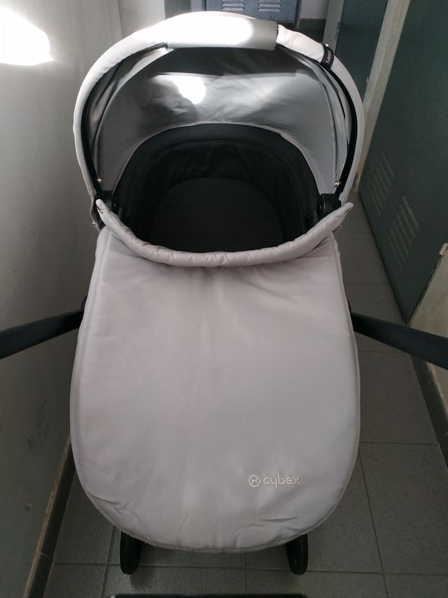 Detalles del productoCapazo para el cochecito Cybex Mios y estructura. Es de color gris claro y tiene un diseño moderno. Viene con plástico para lluvia. En muy buen estado. La estructura del carrito es negra, se pliega de forma muy fácil y el agarre está un poco gastado (se ve en la última foto). NO SE ENVIA.