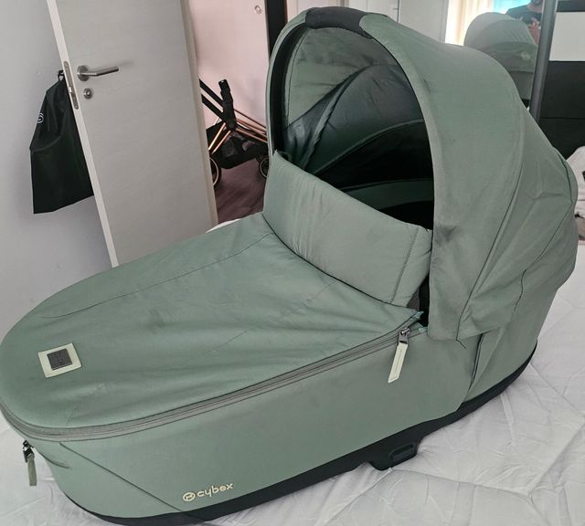Detalles del productoCapazo Cybex Priam en color verde, ideal para los primeros meses del bebé. Incluye dos fundas y un colchón.