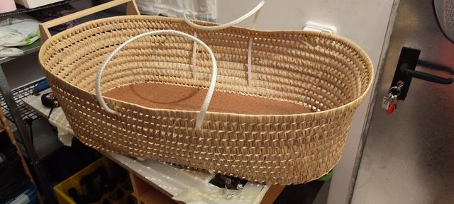 Capazo tipo moisés para bebé. Buen estado, casi nuevo. - Material natural y resistente. - Diseño ovalado con asas. - Base interior de color marrón.