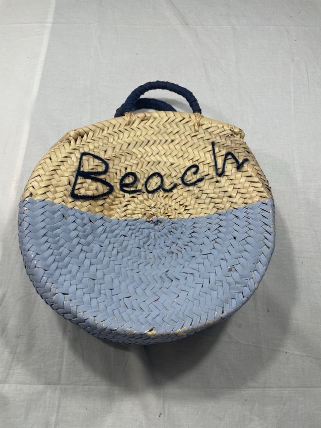 Capazo paja beige y azul