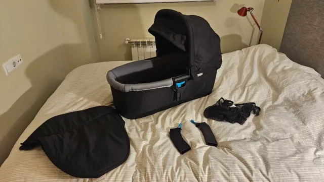 Capazo para carrito de bebé Thule Glide. Color negro. - Capota. - Adaptadores. - Bolsa de transporte.