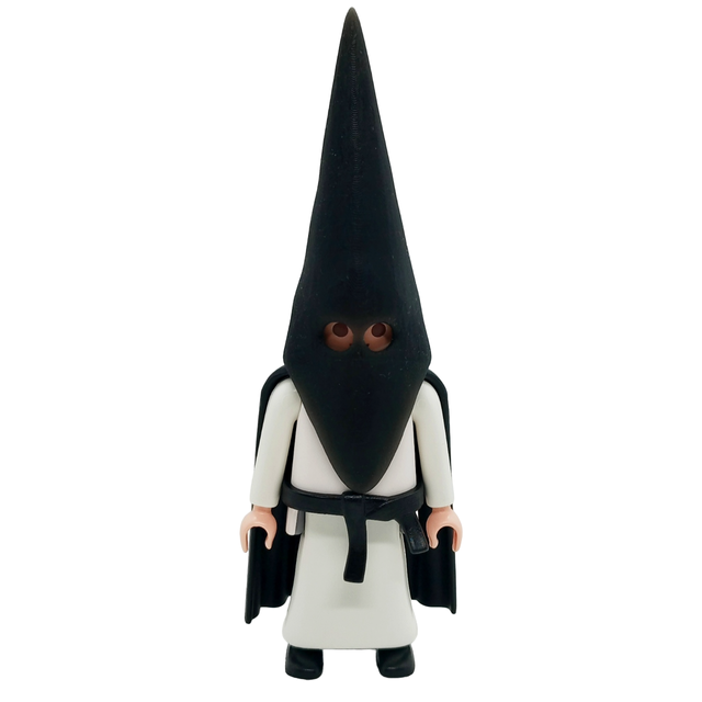 Detalles del productoCapirote realizado en resina negra compatible con playmobil (se puede pintar en cualquier color). No incluye figura.
