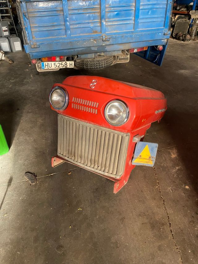 Capó delantero para Barreiros 5000. Pieza de repuesto en color rojo. - Diseño frontal con parrilla. - Dos faros redondos. - Incluye placa de señalización triangular.