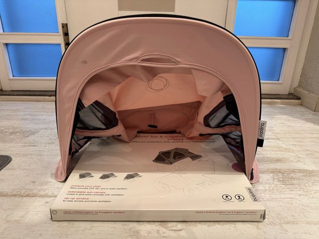 Detalles del productoCapota ventilada original Bugaboo, compatible con Bugaboo Fox y Camaleon. Color rosa claro, en perfecto estado. Incluye embalaje original. Tejido con protección UPF 50+, resistente al agua y lavable. Ventanas con cremallera para mejor ventilación y fácil acceso, ideal para el verano. Proporciona sombra y frescura para tu bebé. Poco uso, sin manchas ni daños. Entrega en mano en Granollers o envío.