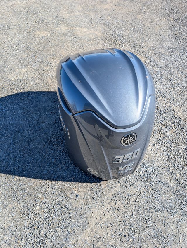 Capota para motor fueraborda Yamaha V6 de 350 CV. Diseño moderno y acabado en gris metalizado. - Logotipo Yamaha. - Indicación de potencia 350. - Modelo V6.